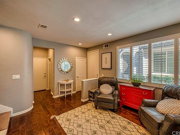 Set within the pristine Mariposa community, this beautifully updated townhome is the practically the definition of 'turnkey.' Inside, you will find a contemporary floorplan that makes exceptional use of every one of its 1,850 sq ft of living space. The first floor boasts stunning wood flooring, and prominently features a modern kitchen, adorned with granite countertops, sleek white cabinets and like-new appliances, which opens into a large family room complete with a custom built TV niche and a beautiful fireplace. Rounding out the downstairs living area are the living and dining rooms, as well as a half bathroom and immaculate laundry room - complete with custom cabinets, front-load washer and dryer (included!), and a walk-in storage room. The second floor hosts all three bedrooms, including the spacious master suite complete with a walk in closet with custom built-in cabinets and organizers, and the entire interior is appointed with luxurious touches including recessed LED lighting, central CAT5 data wiring, built in speakers, and plantation wood shutters. In addition to ample space to park two cars, the garage offers the convenience of a motorized storage rack and a wifi-compatible garage door motor. Finally, out back you are treated to a large, private patio with stamped concrete and always-immaculate artificial grass. And thanks to this home's central SCV location, with easy access to both the 5 and 14 freeways, getting wherever you need to go is always a breeze!