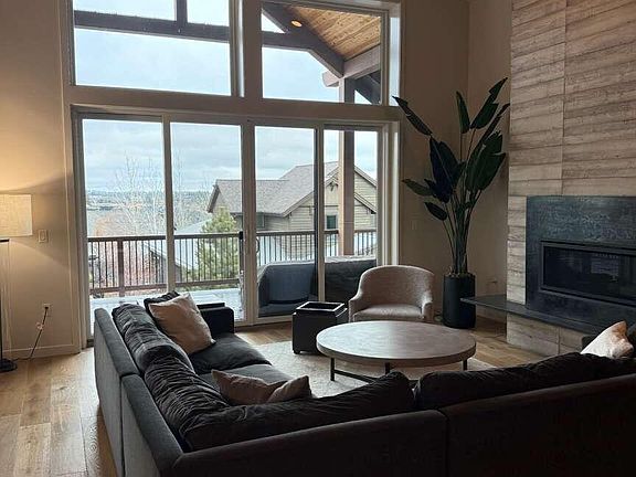 Stunning two-level Tripleknot townhome with panoramic views of the Cascade Mountains and the award-winning Tetherow Golf Course. Designed in Northwest contemporary style, this light-filled residence has vaulted ceilings on the main level leading to an open great room anchored by a sleek gas fireplace. Four bedrooms and four and a half baths ensure plenty of space with two Masters (walk-in closets & ensuite baths), two additional rooms and baths, a dedicated office, full sized laundry and storage areas. Three of four bedrooms access the rear deck or patio to enjoy evening sunsets. The gourmet kitchen includes a large center island with breakfast bar, abundant cabinetry, walk-in pantry, and premium Sub-Zero refrigerator. Downstairs includes a custom wet bar with wine refrigerator, reclaimed wood, second gas fireplace, and a media/living area with hard floors. Resort amenities include new owners' pool and Tetherow's world-class golf, dining, fitness, trails, and community events.
