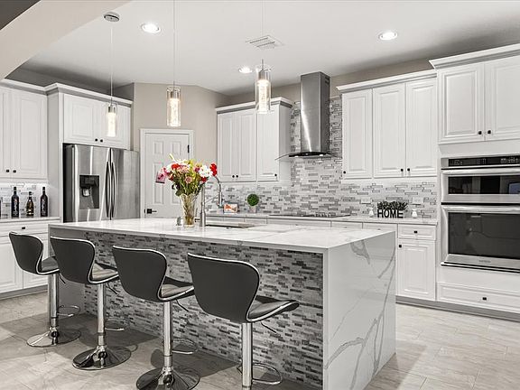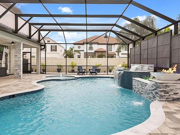 Stunning five-bedroom, four-bathroom home in the desirable Lake Nona community of Fells Landing. With more than $500,000 in upgrades and 4,377 square feet of beautifully designed living space, this property offers luxury, comfort, and exceptional indoor–outdoor living. Inside, you’ll find a thoughtfully upgraded interior featuring modern lighting, electrical window shades, and custom finishes throughout. The gourmet kitchen includes an extended waterfall island, sleek countertops, and a custom backsplash. Upgraded custom pocket sliding doors open the main living area to the outdoor space, and a dedicated home theater with raised flooring creates the perfect entertainment experience. The spacious primary suite includes a custom walk-in closet and spa-like bathroom. The outdoor area is a true highlight. Enjoy a resort-style saltwater pool upgraded with jets, a hot tub, waterfall, and gas fire bowls. A full screen enclosure with Florida glass and an insulated roof extension makes the space usable year-round. Additional features include an outdoor kitchen with commercial-grade ventilation, pergola (with lighting and a fan), a fire pit, extended paver patio and driveway, and decorative rock columns that enhance curb appeal. This home also includes valuable efficiency upgrades such as solar panels, new Lenox variable-speed 4-ton and 3-ton AC units, a tankless water heater, whole-home surge protection, and a full-house water filtration system. Located minutes from top-rated schools, Medical City, Orlando International Airport, and major highways, this exceptional property offers convenience and luxury in one of Central Florida’s most sought-after locations. Schedule a private showing to experience all this home has to offer.