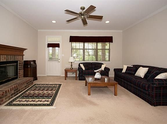 Wonderful Home, Like New Construction with a Living Area with Brick Fireplace, Large Eat In Kitchen and Separate Dining Area with Ceramic Tile and High Ceilings Throughout. One Owner Home has Upgraded Windows, Crown Molding, Sprinkler System, and Security System Just to Name a Few Amenities! Large Covered Back Patio for Entertaining and Enjoying the Large Meticulously Kept Yard. A Must See! Come Meet Your Neighbors!