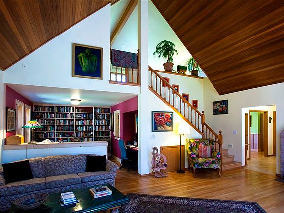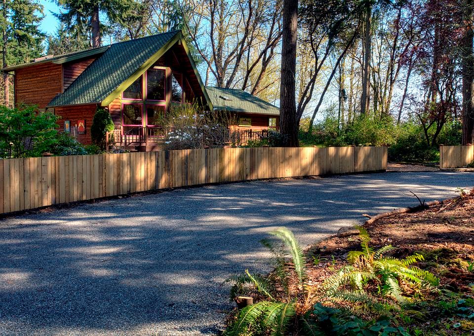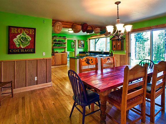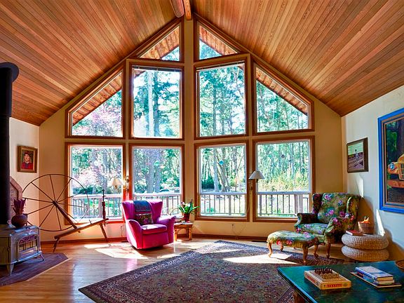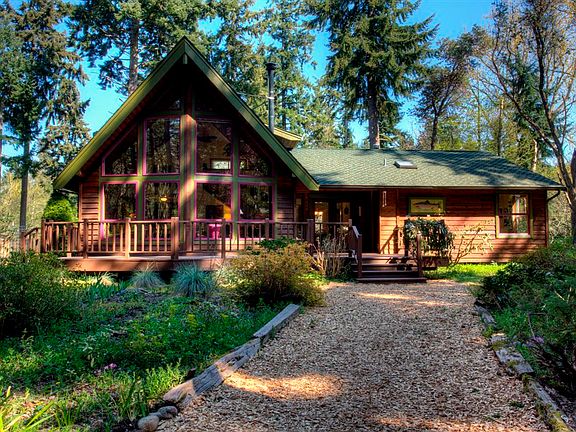 The drive winds through a stunning forest opening to a sun-filled pastoral setting and a quality upgraded Lindal Cedar three bedroom three bath home, all just a short distance from the town center. The home has been beautifully renovated and has mature gardens and native growth framing the home. A 2000 square foot shop and garage give you all the storage and work space you could desire. Privacy, sun, comfortable living spaces on a park-like 5 plus acre parcel.