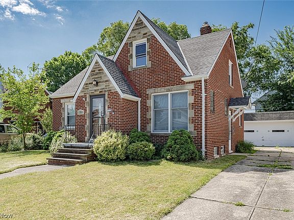 Great opportunity for a charming, all-brick cape cod in the North Collinwood! This well-kept home features 1296 square feet of finished living space with 3 bedrooms, 1 full bathroom, gleaming hardwood floors, newer windows, an updated kitchen, and more! The elegant front door enters into a welcoming foyer with a french door that opens into the living room. Here you will find a beautiful original fireplace and large windows that fill the space with light. Head back to the kitchen that features updated LVP flooring, a tile backsplash, and space for a cozy eat-in area. There are two sizable bedrooms on the first floor, both with hardwood flooring. An updated full bathroom completes the first floor. Upstairs, there is a spacious landing / loft that connects to the generously-sized primary bedroom. The full lower level includes a laundry / utility room as well as a rec room that could easily be finished if desired. Outside, there is an enclosed porch off of the kitchen, as well as a detached 2-car garage. Conveniently located right on the border of Euclid just minutes away from shops, restaurants, Euclid Beach, and highway access! Don't miss this one!