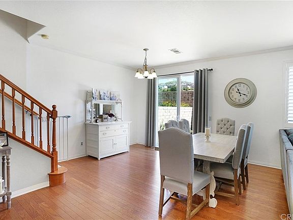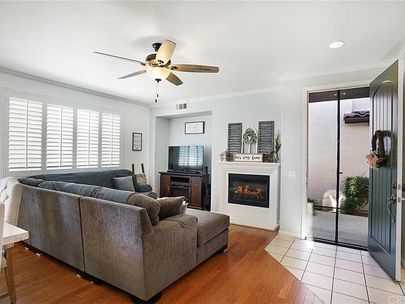 Welcome to this charming townhouse located in the desirable community of Mariposa! With an abundant amount of natural light, the windows are adorned with white plantation shutters and an upgraded downstairs ceiling fan. Cozy up to the family room fireplace or whip up something delicious in the your trendy white kitchen boasting plenty of cabinets, and a large pantry area perfect for all of your storing needs. There is also an intimate breakfast area off the kitchen making it a great space for quiet mornings or a quick bite to eat. Downstairs hosts a guest bath, laundry space with overhead cabinets, and an attached two car garage, complete with built-in overhead storage wracks! Enjoy a glass of wine or host a play date for the kids in your private patio space, upgraded with stone planters and artificial grass for easy maintenance and water conservation, or enjoy a twilight evening under your patio twinkle lights. Upstairs has 3 large bedrooms all upgraded with ceiling fans and tastefully adorned with plantation shutters, and neutral paint tones. The bonus office space off the upstairs landing has a built-in desk, a perfect area to keep the homework or craft space out of the way and organized! The master bedroom has an attached master bath with double sinks and a large walk-in closet, complete with upgraded closet organizers! This home has NO MELLO ROOS and low HOA. Community amenities include: pool, spa, play area, recreation room, and easy access guest parking to the unit.