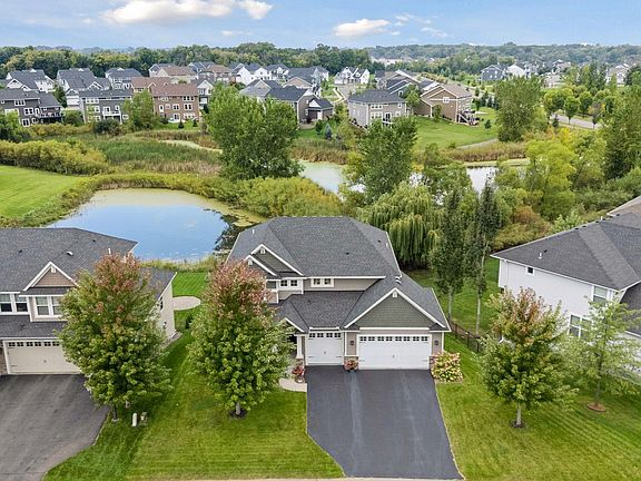 Welcome to this exceptional two-story home located in the highly sought-after Ravinia neighborhood of Corcoran. Meticulously maintained and thoughtfully designed, this spacious residence offers an open and light-filled layout with high-end finishes and attention to detail throughout. Featuring five bedrooms, four bathrooms, and a three-car garage, this home seamlessly blends style and functionality. The main level is ideal for both entertaining and everyday living, showcasing a welcoming front porch, a private office, a large mudroom, an open foyer, and an informal dining area. At the heart of the home, the gourmet kitchen impresses with custom cabinetry, stainless steel appliances, a gas cooktop, double ovens, quartz countertops, a walk-in pantry, a large center island, and a spacious dining area that flows into the sun-drenched living room complete with a beautiful fireplace and custom built-ins. Just off the dining area, enjoy outdoor living on the maintenance-free 18x16 Precision-built deck that overlooks the backyard. Upstairs, you’ll find four generously sized bedrooms and two bathrooms, including a luxurious primary suite with a large walk-in closet and spa-like bath featuring a soaking tub, separate shower, and dual vanities. A full laundry room on the upper level adds convenience. The expansive walkout lower level offers a large family room with a second fireplace, a fifth bedroom, bathroom, a utility room, and a large storage area. Step outside to the private backyard with a spacious 33x17 patio overlooking a serene pond—perfect for relaxing or entertaining. Residents of Ravinia enjoy access to wonderful community amenities, including a neighborhood pool, clubhouse, and playground. Situated in the award-winning Wayzata School District and conveniently close to parks, lakes, trails, shopping, and dining, this home offers an unmatched lifestyle in a truly desirable location. Welcome home.