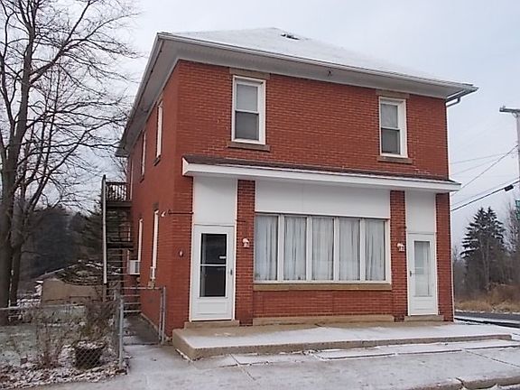 Brick up and down duplex in a quiet rural community that was originally designed and used as First United National Bank. First floor was most recently utilized as a dental practice since 1991. Some remodeling would be needed to first floor to convert to an apartment or opportunity to open your own business. Second floor is designed to have two bedroom apartment. One gas meter and building has hot water baseboard heat on first floor and hot water radiator heat on 2nd floor. Separate entrances or ability to make one unit is possible too. Exterior brick work appears to be in very good condition. Live in one unit and rent the other or use as an investment property.