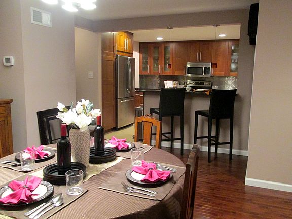 Welcome to this spacious, all brick, end-unit charmer! Fully remodeled + updated kitchen! Check out the SS backsplash, granite, double oven (one is convection), French door SS fridge, pull-out pantry, tons of cabinet storage with all soft close. Wood floors throughout. Look how they gleam! Fully finished basement w/ ceramic floor. Enclosed and private backyard. Great community amenities, too!