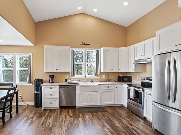 Beautiful 10 Acres with Cottage Minutes from Greenbluff! This 2020 Built Home & Property is Treed, has Beautiful Views and Features: a Cozy Front Porch, Bright Windows with Views all Around, New Flooring with Radiant Floor Heat and a Gas Fireplace flanked by Nice Built-in Shelves. The Kitchen has New Soft Close Cabinets, Stainless-Steel Appliances and a Farmhouse Sink. The Master Bedroom is Spacious with a Walk-in Closet with Barn Door & a Door to the Outside. There is also a 2nd Space for Sleeping Area, Office or Den and a Good Sized Bathroom. Also Included is the Washer & Dryer, Waters Softener, Propane Tank, Mini-Split Heating & A/C, Maintenance Free Metal Roof and Covered Parking Area. The Property has a Well and Septic, Rolling Hills and is Treed and don't forget those Beautiful Views. Live is the Beautiful Cottage or Build your Dream Home and have an In-Law set up or Rental ready to go. Don't Miss this chance to own in the Heart of the Greenbluff Area!!