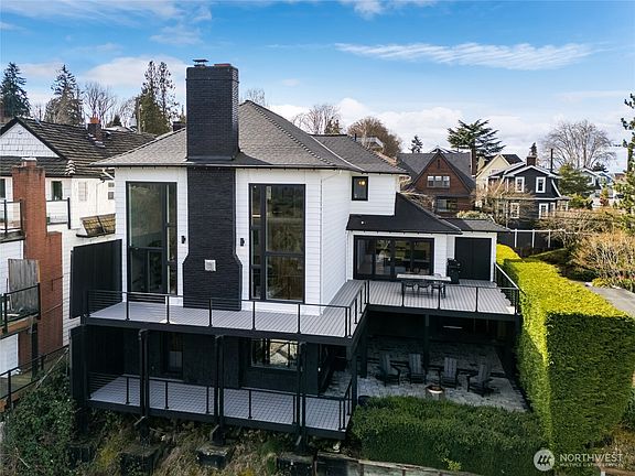 Meticulously remodeled 1910 home with modern conveniences and old world charm. Breathtaking views of Lake WA, the Cascades & Bellevue. The "great room" is crowned by dramatic coffered ceiling & a 2 story fireplace flanked by floor to ceiling windows for maximum natural light. No detail was overlooked including custom lighting, vanities, & railings, crystal door knobs & ball tip hinges. Chef's kitchen opens to wraparound deck perfect for entertaining. East facing luxurious primary suite captures spectacular sunrises & moonrises over the Cascades. New electrical, plumbing, furnace. Enjoy Volunteer Park, an Olmsted design, as well as close proximity to downtown, Capitol Hill, & some of the best restaurants in Seattle!