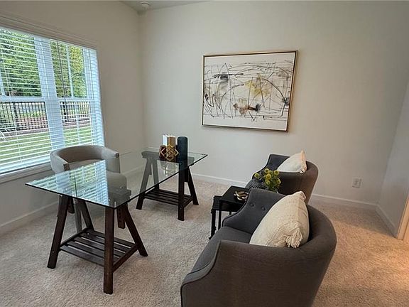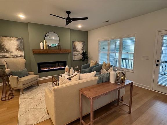 TRATON HOMES KAUFMAN "D" HUGE PRICE IMPROVEMENT AND UP TO $10,000 IN CLOSING COST WITH TRATON APPROVED LENDER THROUGH 10/31/2025 with a full price offer. PRIVATE END UNIT IS BEAUTIFULLY APPOINTED WITH UPGRADES THROUGHOUT. This home has it all! End unit privacy, modern linear fireplace with cedar mantel, covered deck, gold fixtures and hardware in the kitchen and half bath and most of all AMAZING VALUE. Hardwood stairs lead to the main level with an open concept kitchen equipped with gas cooking and an oversize island with quartz countertop that will seat 4 comfortably. The family room boasts a modern fireplace and opens to a spacious 10'x18' covered deck ideal for entertaining. You will find your primary suite on the upper level. The primary bathroom includes a large vanity with dual sinks, a large shower with a bench and a separate water closet. A secondary ensuite is on the upper level. The conveniently located laundry is between these 2 bedrooms offering privacy between them. This END UNIT is enveloped in lush landscaping offering privacy. East Park Village amenities feature a Pool and Cabana, an outdoor covered area with a fireplace, and a Dog Park. The location is within walking distance of Downtown Kennesaw with shops, restaurants, history and entertainment. East Park Village was voted BEST NEIGHBORHOOD IN COBB in 2024. Come see why! We are open 7 days a week. Some photos are of the actual home with staging, some are other homes, and some photos are of our model home for reference. All applicants must prequalify with a Traton preferred lender regardless of who you choose for your loan.