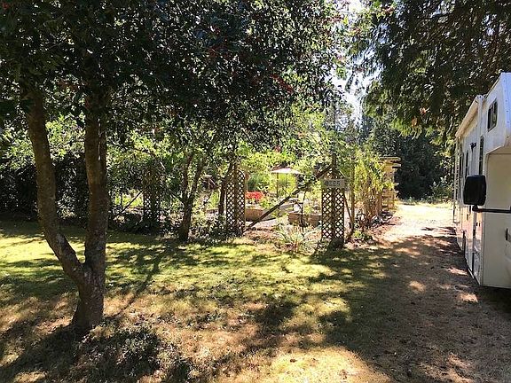 On a quiet dead-end street, only a 10-minute walk to South Beach is a rare Serviced property drenched in sun with mature and meticulously maintained landscaping, fruit trees and raised garden beds adorning the whole yard. On the outskirts of the property, you can sit in the shade of old growth Cedars and Douglas Fir trees. Garden area is fenced to keep out the deer who can often be seen strolling through the property. Enjoy the peaceful serenity, singing birds and soaring eagles. A fire pit is already installed for evening fires and toasting marshmallows. Lots of room for the RV. Minutes to scenic trails, marina, cafes, golf, beaches, and whale watching. Installed Septic System and Water Meter - this lot is practically ready to go!