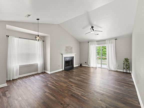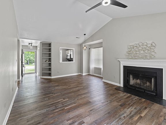 Welcome to this beautifully updated ranch home, meticulously crafted with modern conveniences and attention to detail throughout. Step inside to discover a kitchen with stainless steel appliances, and a practical pass-through window to the dining area—ideal for entertaining. The interior boasts high cathedral ceilings and an elegant fireplace that adds a sophisticated touch. Each room is thoughtfully designed to offer a move-in-ready experience, featuring a fresh, inviting atmosphere that instantly feels like home. The private backyard, shielded by mature trees, creates a serene oasis with a deck off the living room, perfect for quiet relaxation or hosting gatherings. Situated in a peaceful neighborhood close to NC Central and RTP, this home is perfectly positioned for those seeking a blend of convenience and tranquility.