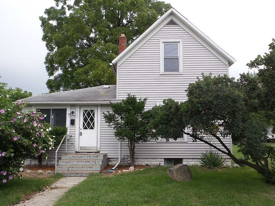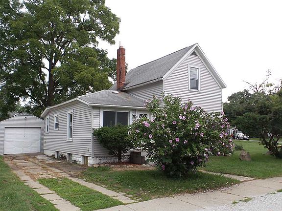 Check out this cute 1.5 story home recently remodeled with new vinyl siding, roof, furnace, A/C, garage door, flooring, kitchen, bathroom, and freshly painted throughout. New kitchen with cabinets, counters and appliances connect to the spacious open dinging area. Main level bedroom and the upper level has a bedroom and a landing area with closet that could be used for a bedroom or sitting area. Nice new bathroom features tub with shower, vanity and toilet. Full unfinished basement and one car detached garage all sit on a big corner lot for you to enjoy!