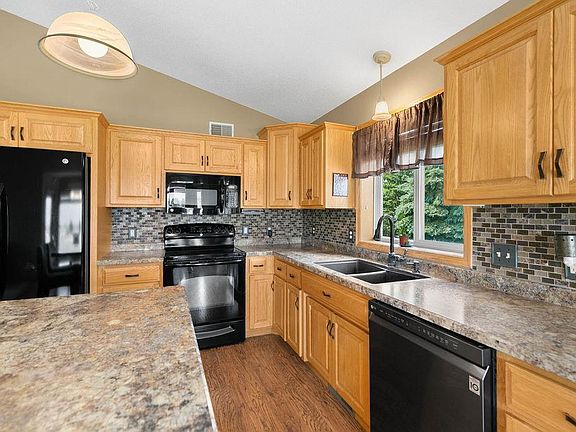 Welcome to this spacious 5 bedroom, 3 bathroom home in Sauk Rapids! Recent upgrades including a new roof, siding, and gutters gives this exterior a fresh new look and great curb appeal! The kitchen has lots of extra cabinets for storage and a center island for easy prep and cooking. There are 3 bedrooms upstairs including the primary with a walk-in closet and private bathroom- complete with double sinks! There is an additional full bath upstairs too. You're sure to enjoy the huge family room downstairs with tons of space, a gas fireplace, and a bar for fun entertaining. Two more bedrooms, a 3/4 bathroom and the laundry room round out the lower level of this home. The backyard offers privacy with mature trees- perfect when you are enjoying an evening on your patio or deck! The 3 car garage is heated and insulated, providing not only ample parking space, but also room for storage or room for hobbies. Great home in a great neighborhood- schedule your showing today!