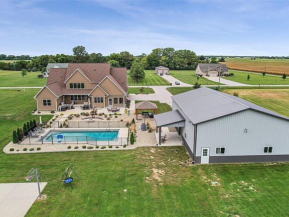 Luxury Living in the Country on 3 acres! Thoughtfully customized built home has 6 Bedrooms, 5 Bathrooms & over 5700 sq ft of finished living space! Open floor plan with over 10 ft. ceilings, custom built-ins, 2 fireplaces, screened-in porch, covered patio, large patio connected to in-ground pool, hot tub, & portico with fire pit. Near the house is a finished, heated, 40x64 recreational barn with (2) 12-foot garage doors, openers & a side garage door for easy access to outside entertaining. Home has solar panels, security lights, underground dog fence, & extremely well documented & detailed records of all systems. Additional Rooms: Mud Room COOL: 14 SEER+