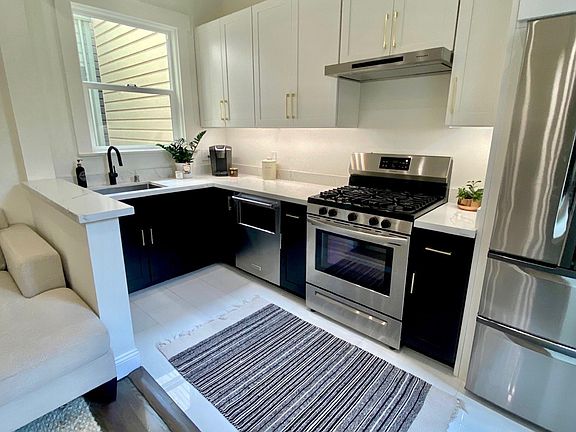 *Water, Garbage, HOA fees and Parking are included in monthly rental* Rarely available and newly renovated, this 2-bed, 1-bath, 1-car garage beauty is a truly one-of-a-kind oasis located right on the panhandle in one of San Francisco's most desirable neighborhoods, just steps from Golden Gate Park. Set inside a freshly painted grand-scale art nouveau mansion with a formal foyer and handsome staircase, this cheerful and charming condo mixes traditional features like tall coved ceilings, wood floors, and a large fireplace with all modern amenities including brand new kitchen appliances, recessed lights and dual-pane windows. The condo is complete with a generous exclusive use outdoor patio that looks out over a lush backyard ornamented by morning glory flowers and mature trees including a large majestic date palm tree with a large built-in bench for fun get togethers and BBQs. With a 95 Walk Score, 92 Bike Score and 79 Transit Score, you're just steps away from all the action in and around Golden Gate Park, USF, UCSF and the Haight. Tech shuttle stops around the corner. This unit is equipped with several home automation features, including mood lighting, 65" and 55" LED televisions, a smart entry lock system, smart thermostats and sensors. - Small dogs and cats welcome. Pets live free! - Water, Garbage, HOA fees, and Parking are included in the monthly rental cost - On-site parking in covered garage with remote control access for a medium sized vehicle - Exclusive use outdoor patio overlooking garden oasis *Showings by appointment available on April 13, 14, 16 and 21*