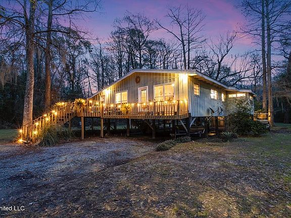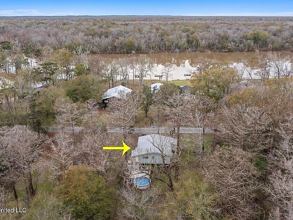 The epitome of southern charm and living at the river! Welcome to this picturesque home that offers views of the Pascagoula River and a cozy location amongst like camps. Located just across the street from waterfront this home features a metal roof, open floor plan, vaulted ceilings, large front and rear decks, an above ground pool, and fruit trees. Other highlights include in home laundry, unique stain glass windows, planked wood ceilings in the kitchen and living areas, additional storage room that holds a water filter for the well, and new flooring is currently being installed in the bathroom and kitchen. (Pro photos will be uploaded once work is complete) East Central School District. Minutes from Cumbest Bluff for boating and entertainment. Assumable flood policy available.