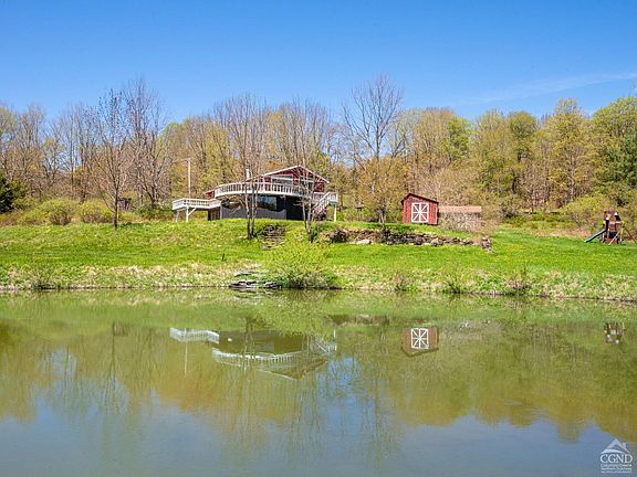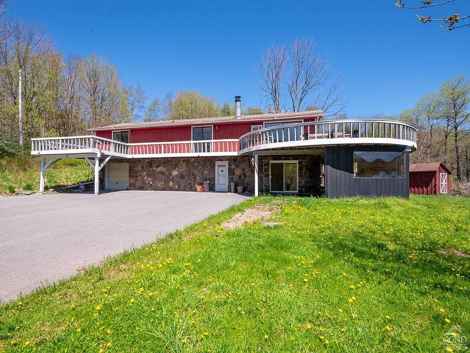 Nestled in the heart of the majestic Catskills, this beautiful residence offers the perfect fusion of modern living and tranquil outdoor enjoyment. Freshly updated with a crisp and contemporary style, the interior of this home, including the kitchen cabinets, has been recently painted, creating an inviting atmosphere that welcomes you to a life of serene luxury.Boasting a spacious 2,600 sqft open floor plan that bathes each room in natural light, this home features 4 bedrooms, 3 full bathrooms, and elegant hardwood floors. The heart of the home is undoubtedly the open-concept kitchen, dining, and living area, complete with a cozy wood-burning fireplace for those chilly evenings. This space opens out onto a generous wrap-around deck, offering breathtaking views of the pond and rolling mountain vistas, providing a picturesque backdrop that is sure to inspire and rejuvenate.Two of the bedrooms feature direct access to the deck, allowing you to wake up to the stunning mountain scenery, while the other two bedrooms have direct outdoor access, immersing you in the beauty of the surrounding nature. The lower level of the home unveils a vast family and game room with a full bathroom and its own entrance, presenting a versatile space that can serve as an entertainment hub or a private guest suite.Outdoor living is elevated to new heights, choose to relax or entertain on the expansive deck, soak away the day's stresses in the hot tub, or to spend a lazy day beside the pond and fire-pit area. For those who love adventure, the property is perfectly located just 10 minutes from the vibrant towns of Hunter and Windham, offering easy access to skiing, hiking, golfing, biking, fishing, swimming, and a plethora of other outdoor activities the Catskills are celebrated for.Additional amenities include a built-in garage, two sheds for ample storage, and a paved driveway that enhances the home's curb appeal. Situated just 2.5 hours from NYC, this upstate escape represents a rare opportunity to own a piece of tranquility in one of the most sought-after regions of New York. Don't miss out on the chance to make this dreamy mountain retreat yours. Schedule an in-person showing today and start living the idyllic lifestyle you've always envisioned!
