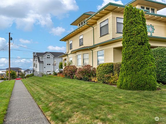 Monte Cristo Award winner. This historic North Everett home is on the market for the first time in 70 years. Spacious main floor includes a beautiful staircase in the entry foyer, a living room with wood burning fireplace and dining room with huge windows, orginal woodwork and period French doors, a large kitchen, full bath and two porches. The 2nd floor has 5 large bedrooms one that opens on to a deck with panoramic Sound, mountain, and gorgeous sunsets views. The 3rd floor has additional rooms available as bedroom, study and playroom. The basement level has a separate entrance and is currently used as a laundry room, large rec-room. office and work shop. All on a beautiful corner lot with a seperate single car garage on private alley.