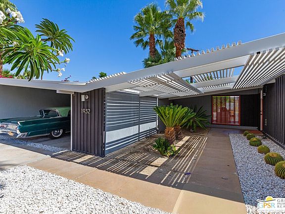 Renowned architect William Krisel is best known for his iconic butterfly roofline designs and likely created more of them than any other architect. This home is a perfect example of why his work was so important and continues to enthrall us to this day. The dramatic, soaring roof not only echoes the silhouette of the surrounding mountains but also allows for expansive clerestory windows that blur the line between indoors and out, flooding the interior with natural light and truly bringing the outdoors in. Krisel's designs for the Twin Palms neighborhood, developed in 1957 for the Alexander Construction Company, were elegantly simple, highly livable, and revolutionary in showing how cutting-edge architecture could be brought to the mainstream market. Now thoughtfully updated, this home invites you to experience Krisel's vision in a contemporary way. It features three bedrooms and two bathrooms, along with two additional bonus rooms accessed from the exterior, ideal for a studio, office, or guest space. The open-concept kitchen flows into the dining and living areas, which extend outward to a private pool, spa, and patio. A covered outdoor entertainment area with built-in BBQ completes this quintessential Palm Springs lifestyle experience.