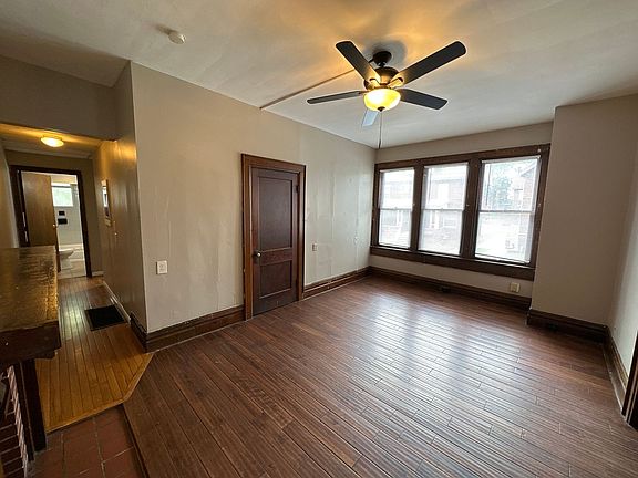 Features include hardwood floors, ceramic tiled kitchen floors, washer and dryer, dishwasher, lots of light, front porch and ceiling fans. There is also off street parking available for purchase!