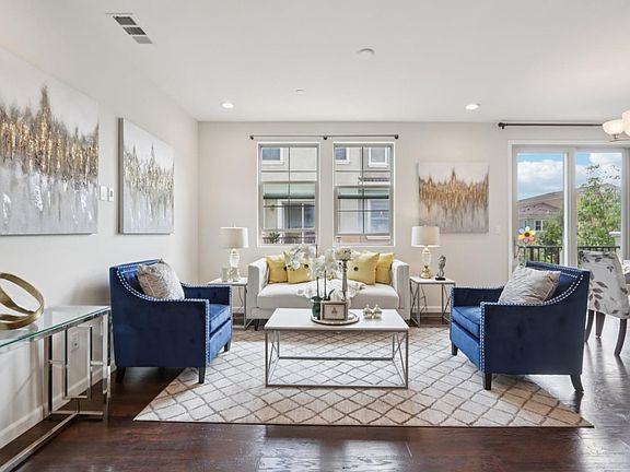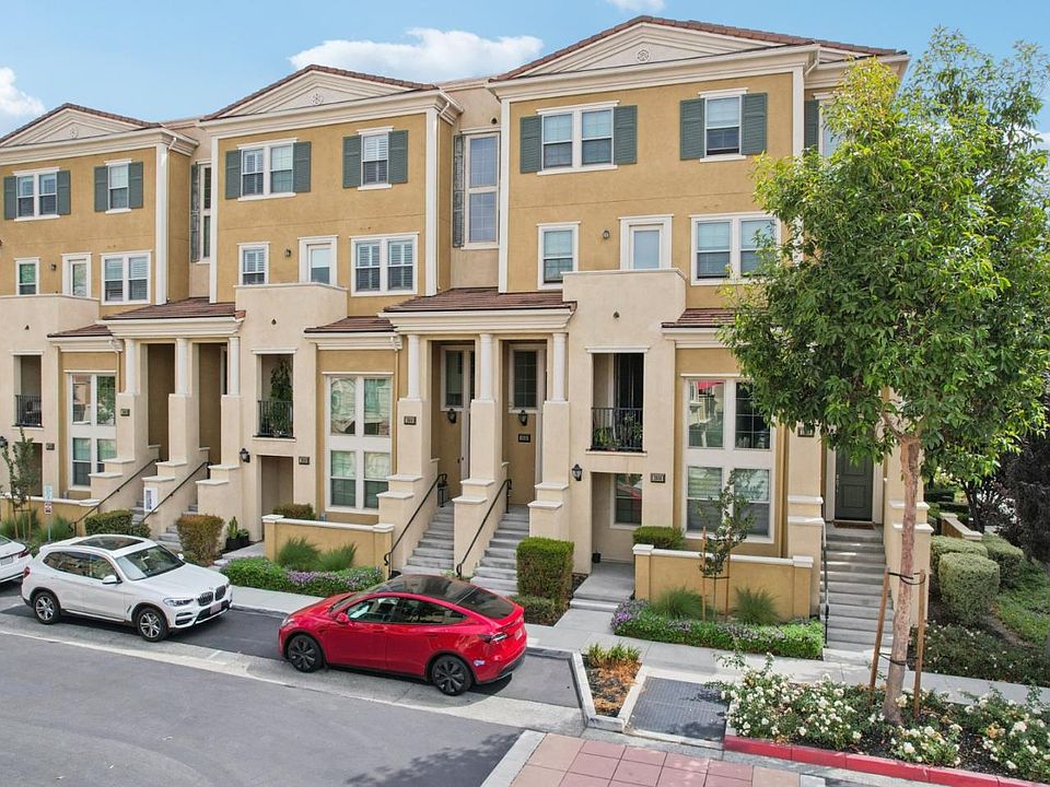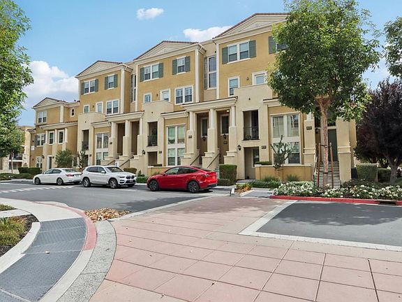 Stunning 3-bedroom, 3-bath townhouse in the quiet, prime location of the Traverse community. Filled with natural light and surrounded by trees, this home offers easy access to the community park, playground, and guest parking. Tastefully upgraded throughout with contemporary cabinets and premium countertops, including an oversized island with sink. Convenient layout features one bedroom and full bath on the main living level. The spacious primary suite includes a walk-in closet and a luxurious bath with dual vanity, deep soaking tub, and separate shower. Low HOA fees with amenities to enjoy. Excellent location within walking distance to Mabel Mattos Elementary, new parks, Great Mall, shopping centers, and future BART. Easy access to freeways, public transit, and major high-tech employers.
