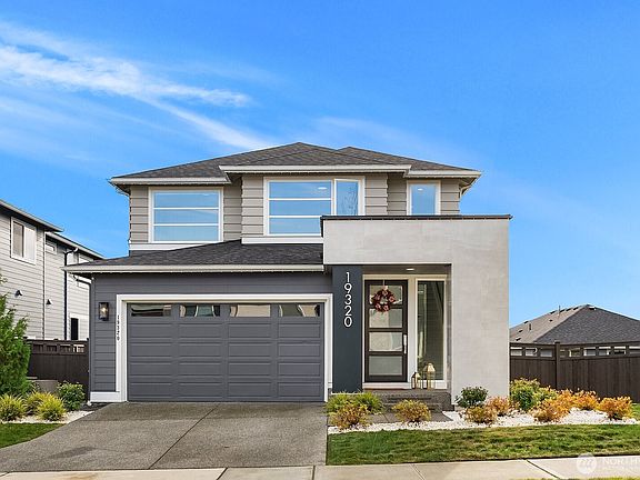 Elegant 3-story home designed for modern living and entertaining effortlessly with Gourmet Kitchen, 3cm Quartz counters, Stainless Steel appliances, LED lighting, and wide-plank flooring. The basement level features the Recreation Room, Guest Room, Full Bath, and a Covered Patio, leading to spacious back and side yards. Upstairs, find the luxurious Grand Suite with a walk-in Dressing Room, free-standing tub, frameless shower, and dual quartz vanities, plus 2 additional bedrooms, bathroom, and leisure room. A/C . Mount Rainier views! Close to schools, shopping, restaurants, and easy access to Highways 2 & 522. Style, comfort, and space in one beautiful home!