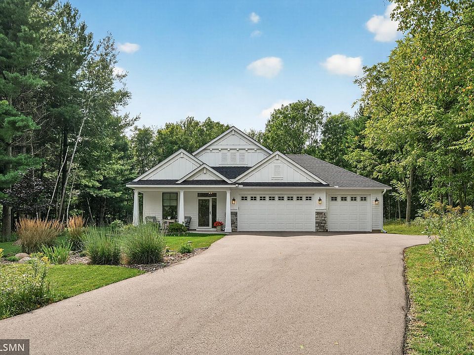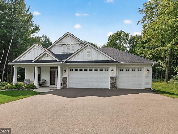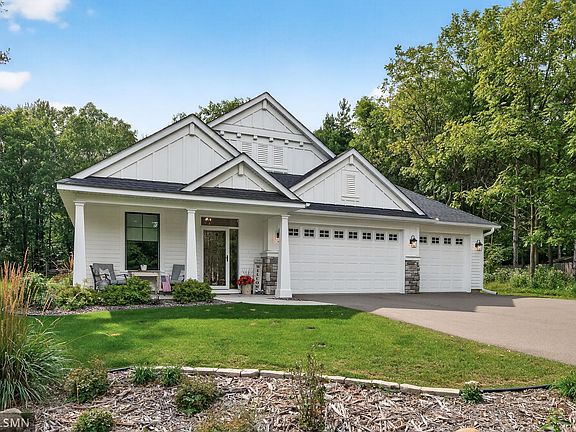 Welcome to 19320 Meadowridge Trail N, Marine on Saint Croix, MN. Nestled on just over an acre of beautifully landscaped grounds, this stunning custom-built home offers the perfect blend of privacy, quality, and one-level living. Built in 2022, every inch of this property showcases thoughtful design and top-tier craftsmanship. Step inside to discover gorgeous flooring, arched entryways, solid wood doors, and timeless finishes throughout. The open-concept main living area features a cozy stone gas fireplace, ideal for relaxing or entertaining, and flows seamlessly into a spacious dining area. The chef’s kitchen is a dream come true, complete with a cooktop, stylish range hood, wall oven, and an oversized island perfect for gathering with friends and family.