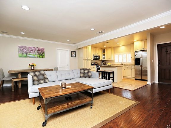 Contemporary living is embodied in this 3 bedroom, 2 bathroom home located in Reseda. As you arrive at the house you will immediately notice the expansiveness of the landscaped front yard which is lined with plants and flowers creating an inviting atmosphere. Inside, the home is in pristine condition, and attention to detail is clear. The kitchen which overlooks the living and dining area, features stainless steel appliances, quartz counter tops, a large island which doubles as a breakfast bar, and gorgeous raised panel cabinetry with glass inserts for a luxurious look. The bedrooms are large and light-filled with the plantation window shutters, and large mirrored closets which only emphasizes the spaciousness. Slick and modern describes the bathrooms which features sink vanities and mirrors with sleek hardware and lines, and contemporary tiling. Beautiful crown molding and upgraded baseboard throughout the home, as well as recessed lighting for a modern feel. The paved patio area in the back is perfect for outdoor entertaining, and there is plenty of room for you to add your personal touches through gardening. The extra tall hedge in the back is also perfect for extra privacy! 2 car attached garage, and RV parking. Don't miss out on this wonderful piece of property with solar panels completely paid off!