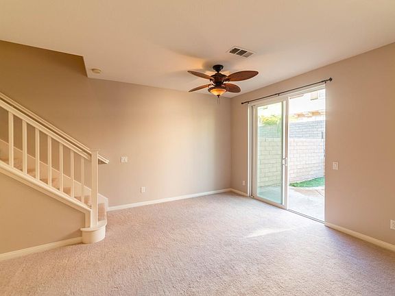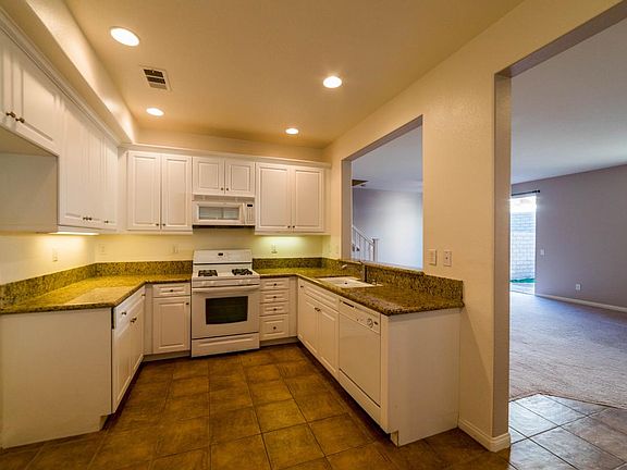 Wow Turn-Key 3+2.5 Mariposa Townhome in Santa Clarita. Modern open floor-plan, 9 foot tall ceilings, upgraded eat-in kitchen off living room and formal dining with dual pane windows & slider out to the large backyard! 3 spacious bedrooms with a built-in desk area on the landing at the top of the stairs for a nice sized home office. 2 Car garage has extra space and high ceilings for storage. Large master suite with dual his/hers sinks, separate water closet and large walk-in closet with storage cabinets. Extra incredible resort-like pool is a few buildings over and kids playground nearby as well. Nestled nicely in the middle of the complex, away from Plum Canyon traffic on the only cul-de-sac in the complex.
