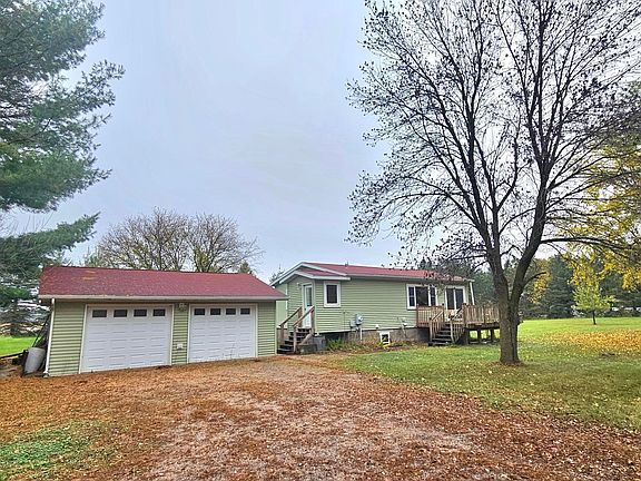 Beautiful country setting for this home nestled on this nearly 2-acre lot only minutes from town featuring 3 bedrooms, 2 bathrooms, office, family room, living room, dining room, 2 stall 24x26' heated garage, plus additional 1 stall garage to accommodate all your storage. You will enjoy sitting on the front deck overlooking Pine Lake surrounded by mature trees. The block foundation is from 1992 and home has many updates over the years including newer electrical, windows, plumbing, steel siding, forced air furnace and AC. Main level was being remodeled with kitchen cabinets, trim, base boards and panel doors purchased and waiting to be installed by new owner. This property has endless potential and in overall good condition needing the finishing touches. You will appreciate this ideal location on an impressive lot you will enjoy for years to come.