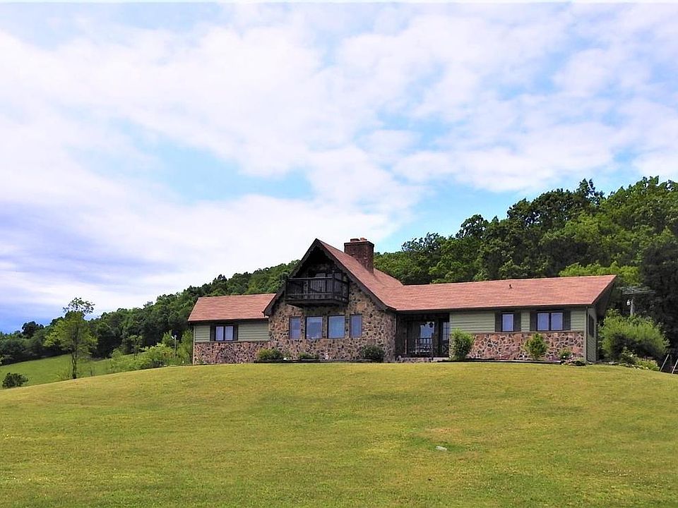 View, Views, and more Views. If you are looking for your new home, with over 4000 square foot of total finished living space, located on over 5 acres, an 18x36 inground pool, with breathtaking views, make sure you check this property. Oh, by the way, the pool liner and pump were replaced in 2019. The roof was also replaced in 2019 with architectural shingles. When you walk in the rear entrance, you will go thru the 12x12 mudroom into the 8x11 foyer(which is also accessed via the front door). To your left will be two bedrooms,11x10 and 11x9, plus a full bath. Turning back towards the foyer, on the left, is the stairway to the lower level/basement area. To the right of the foyer you will see both the dining room and the living room areas. The 10x10 dining area, which leads to the kitchen, is equipped with a built-in charcoal BBQ pit. The 15x18 living room, boasts a floor to ceiling brick fireplace, with a wood heat insert. The vaulted ceiling adds additional grace and charm when relaxing. Down the hallway from the kitchen/living room areas is the 13x12 Master Bedroom, with attached Master Bath. A sliding door leads to the 14x18 sunroom , which is equipped with a full bath/jacuzzi tub. The walls in this bath are marble. The sunroom also has a separate sitting area, a second stairway to the lower level/basement, access to the inground pool, plus a separate entrance to the 14x12 screened-in porch, which leads to the rear of the home. But wait, did I mention the home intercom system and vacuum system ? This home has both. When you walk downstairs from the foyer to the lower level/basement, on your right will be a second full 11x12 kitchen. To the right of this second kitchen is an 11x10 separate "den", down the hallway is a 14x18 family room, with a second floor to ceiling fireplace, this one being propane. Past the family room, on the end of this level, is a 12x19 "recreation" room. But, that's not all. As you exit the "rec" room, and step to your right, you will notice another full bath, plus the laundry.(The washer/dryer/utility tub convey.)Let's quickly revisit the exterior again. 5.14 acres. Enjoy the large screened pavilion. Utilize the run-in shed for tools/equipment. Relax by your pool and enjoy the sunrise and sunsets. Come and experience the fantastic views. You will be glad you did.
