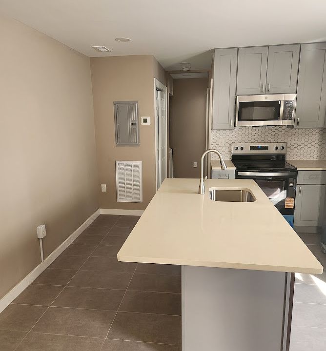 Quartz countertopSpacious second floor condoNice island kitchenAmple storageStainless steel appliances