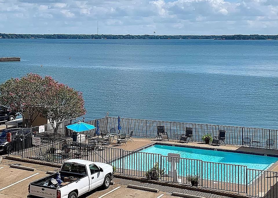 Swimming poolCovered balconyGarbage disposalStainless steel appliancesCovered patiosLake viewsLarge closet