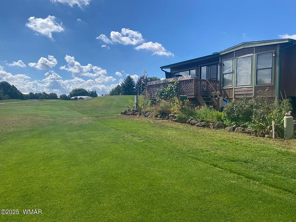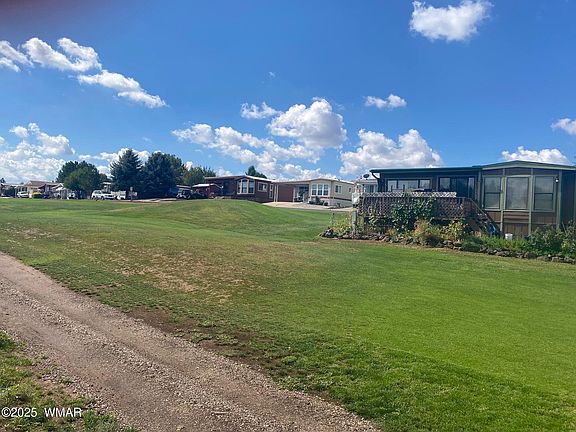 This spacious home is located on the golf course surrounded on three sides ''on the green''! The deck is facing East with the morning sun to enjoy a cup of coffee and panoramic view of nature and wildlife. The remodeled kitchen features stainless appliances, dishwasher and newer corian counter tops. Laminate flooring throughout the home. A laundry room equipped with newer full size washer & dryer. The exterior was painted in 2024 and the shingle roof is only 2 years old. This home comes unfurnished and includes a golf cart ''as is''. At Juniper Ridge Resort, you own your land in this 55 Plus, Gated Community located in the cool White Mountains of Show Low, AZ. Enjoy the private 18 hole golf course, Pickle Ball, Planned Activities and MORE! A lifestyle you deserve!!