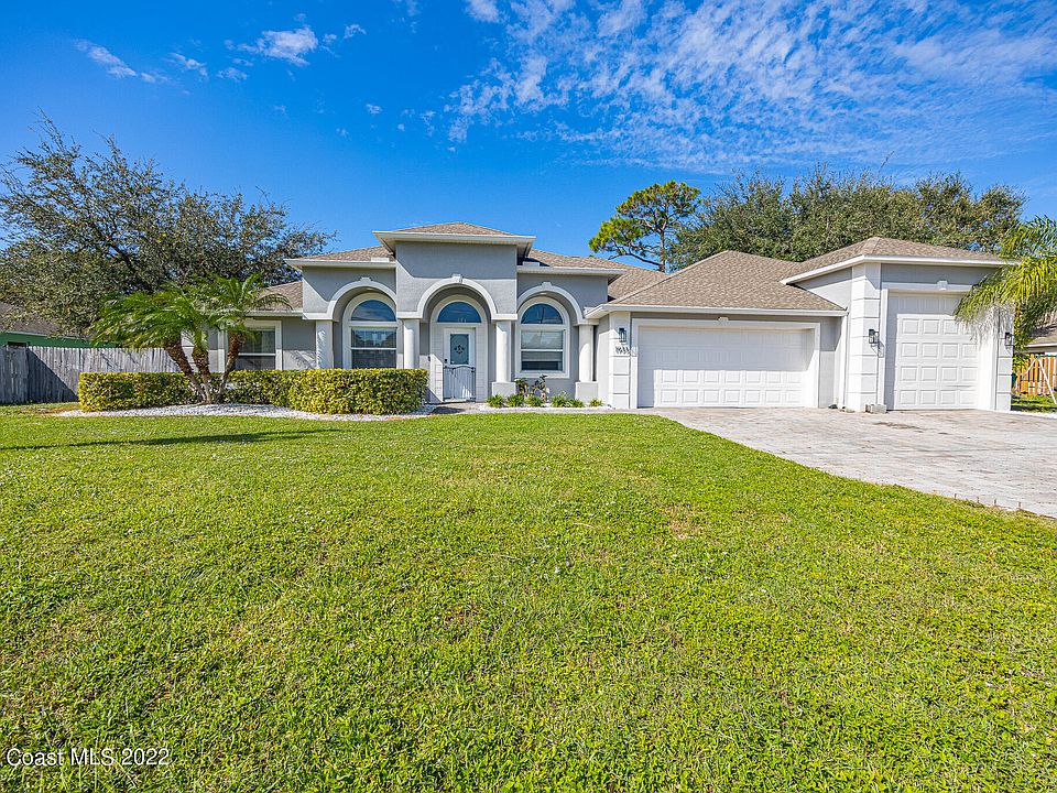 NEW ROOF! Survey on file; backyard big enough to fit a pool! This home has been completely remodeled with exquisite finishes! The gourmet custom kitchen boasts an oversized Island with Quartz countertops- remodeled in 2020. All new interior paint in 2020, exterior paint in 2021. AC 2018. Hot Water Heater 2021. Originally built in 2007 by Damar Homes, known for ''The Damar Difference'', building homes that last. The entry way welcomes you into the expansive open living areas with soaring ceilings. Enjoy a bright and airy atmosphere due to tons of natural light. Upgraded flooring throughout, Ikea closets, and custom laundry room name just a few other beautiful upgrades. The three-car garage offers RV / Boat height storage to truly make this the perfect Florida home. Centrally located close to Blue Origins, SpaceX, Nasa, and just a short drive to Patrick. This is a must see!