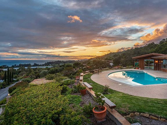 Ocean, island and mountain views on the Santa Barbara foothills, this home maximizes both privacy & convenience. This gated single level 3 bdrm 3 bath pool home, situated on almost 2 acres, is complemented with a 3 car garage + workshop & outdoor kitchen. Plans to convert workshop to 2nd home available. Just minutes from Padaro Lane & Santa Claus Beach, this custom 1983 jewel captures breathtaking views. Expansive windows & doors open to the outdoor patio & pool & cater to intimate gatherings or larger house parties. Wine cellar, outdoor kitchen, raised gardens plus deck views complement gorgeous landscaping.