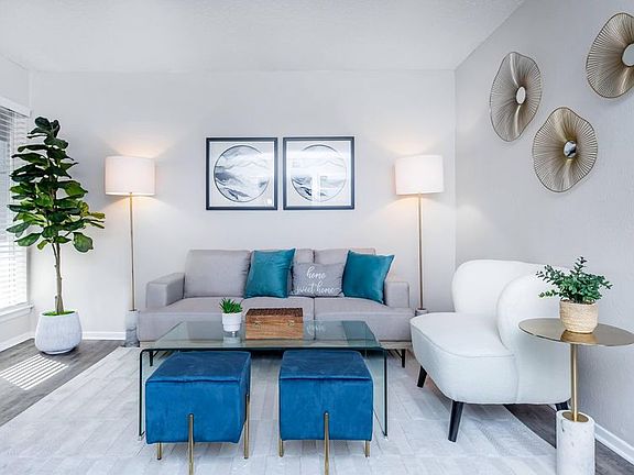 Sparkling swimming poolBeautifully landscaped outdoor areasFaux wood flooringCeiling fansCentral air and heatingSpacious layoutsGranite-inspired countertops