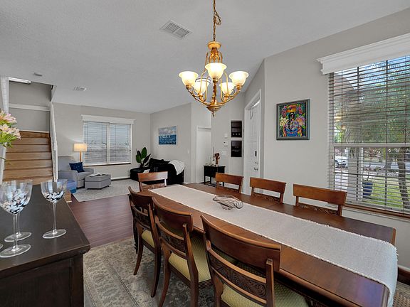 Picture yourself living in this gorgeous 5-bedroom, 3-bathroom, 2-story home in a gated community. This home is designed for entertainment and everyday living with plenty of space. Enjoy an open floor plan, high ceilings, upgraded kitchen, stainless steel appliances, plenty of cabinets, and abundant countertops. The kitchen adjoins the family room, dining room, and living room. Walk outside to your sizeable screen-enclosed patio with a new back yard PVC fenced. One bedroom and full bath are on the lower level, perfect for an elderly family member. You have four bedrooms on the upper level, including a spacious primary suite and laundry room. Enjoy resort-style amenities in this community, which include a pool, child play area, clubhouse, gym, and more. Welcome home!