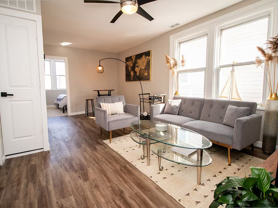 Updated 3 bedroom, 1 bathroom apartment in a great West Town location. The unit has an open layout with newer flooring, fresh paint, and modern finishes. The kitchen features updated appliances, plenty of cabinet space, and room to cook comfortably. Primary has a huge walk in closet, or can be used as an extra room for office.