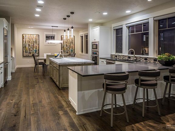 Brand New Single Level Home in Tetherow. Mountain-Modern Home features sunny open great room w/ spacious chef's kitchen;slab-granite prep island, quartz counters & Thermador appliances, breakfast bar & dining room. Master Suite w/spa-worthy bath, free-standing tub, dual sinks & separate vanity. 2 Full en-Suite Guest Rooms plus Large Office w/ private patio. Gated Courtyard Entry. Tetherow Social Membership & Landscape Maintenance included. Last Available model of this Tour of Homes Award Winning Floorplan