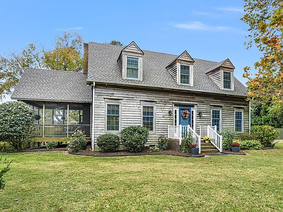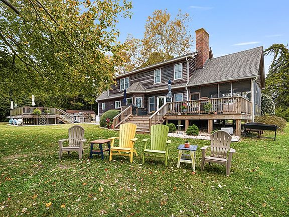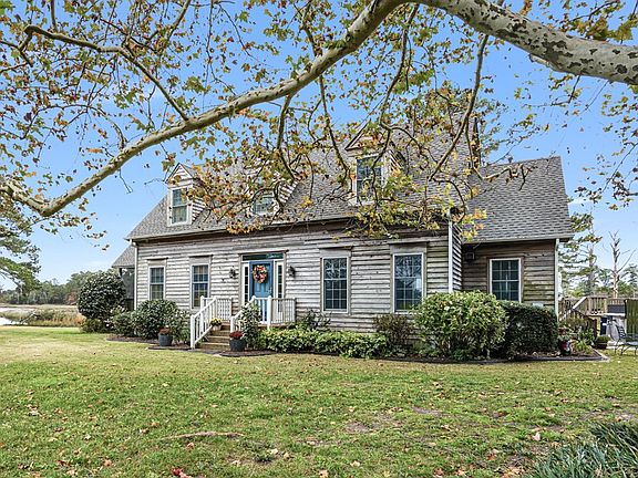 Tucked along the peaceful waterfront, this home offers a private setting with beautiful views, lush grass, and mature landscaping. The traditional floor plan includes a foyer, formal dining and living rooms, plus a cozy den with a wood-burning fireplace. Upstairs are three bedrooms, including an owner's suite with four closets. Outdoor living shines with an oversized deck, screened porch, and pool, perfect for relaxing or entertaining. A new roof was installed in 2025. Two sheds convey, one equipped with 200-amp electric service and mini-split makes a great workshop. A private T-pier completes this exceptional property. Nestled on the outskirts of Onancock, you are minutes from Riverside Shore Memorial Hospital, shopping and public boat ramps.