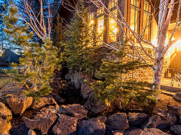Custom Broken Top home located in private park-like setting on a quiet cul-de-sac. Fine craftsmanship throughout with dramatic high ceilings, exposed wood beams and grand double-sided stone fireplace. Mostly main level living with oversize master suite featuring stone surround fireplace, sitting area, patio access and large walk-in closet. Guest suite with large private bath and access to outdoor patio. Gourmet cook's dream kitchen with large island and breakfast nook. Second guest suite upstairs with built-in desk and shelving plus private full bath. Beautiful mature landscaped exterior with water feature and is located on a corner lot bordering open common area for additional space and privacy. Two private paver patios with a built-in BBQ along with a secluded court yard featuring a hot tub. Large three car garage with built-in cabinets. Large extra storage room next to utility room. Privacy, luxury and entertainer's delight.