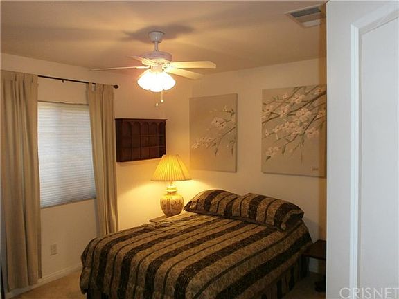 PRISTINE AND SPOTLESS! Original owner has kept this large town home in immaculate shape. Spacious and open floor plan with three bedrooms and 2.5 bath rooms. Custom tile in kitchen and bath rooms. Neutral carpet throughout. Ceiling fans in bedrooms. Master bedroom has private bathroom with dual sinks and walk in closet. Cozy and private backyard with covered patio and grassy area. 2 car direct access garage. Community amenities include resort style pool and spa, BBQ area, clubhouse and kids playground, all this for a low HOA of only $150! VA approved and NO mello roos.