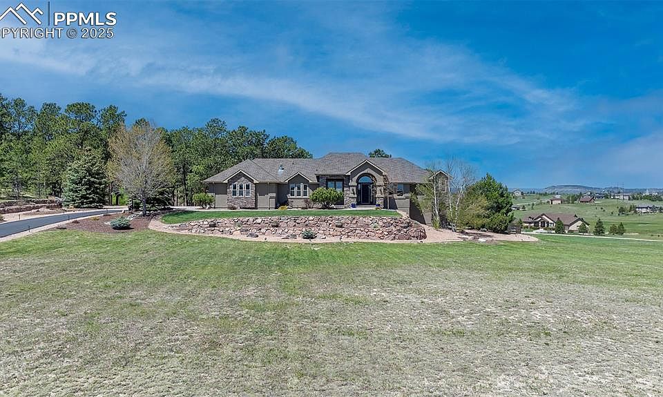 Enjoy the peace & quiet on this impeccably maintained walk-out ranch on 2.5 acres nestled on a serene cul-de-sac! Welcome home to this custom-built property featuring main floor primary suite w/en suite 5-piece bath, two-sided fireplace & separate walk-in closets. Upon entering the foyer, be wowed by the beamed ceilings & huge wall of windows overlooking the fenced backyard w/towering pines & mature foliage. The gleaming hardwood floors run throughout the main living areas. Chef's will delight with the gourmet kitchen which includes 6 burner gas cooktop w/range hood, walk-in pantry, huge center island with eat up bar and stainless-steel appliances. The open concept layout includes the family, dining nook & separate dining room along w/kitchen. The family room is a wonderful hang out space that includes custom stone fireplace surround & hearth. Walking into the primary suite, this grand space includes sitting nook, dual sided fireplace & custom primary bath. Bath features dual vanities, deep soaking tub, glass block walk-in shower with dual shower heads, & two separate large walk-in closets. The executive office space features hardwood floors and glass front french doors all overlooking the front yard. A separate powder room and dedicated laundry room complete the main floor. Downstairs in the walk-out basement, there are 3 additional bdrms. 2 of these generous sized rms share a jack-n-jill full bath, & the other with a private en suite full bath, all w/walk in closets. The basement great room is set for TV watching & entertaining that includes a wet bar area w/ beverage fridge. Completing the basement is a 470 sq. ft. unfinished storage space and utility room. You will love enjoying the quiet summer nights out on your covered deck or on the lower level by the built-in fire pit. Clean and move in ready! The oversized 4 car garage has exterior door access, finished floors & storage space. Too much good stuff to list, don't wait see today!