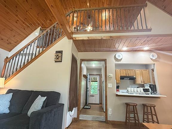 Charming A-Frame on 10 Private Acres – Turnkey Airbnb or Personal Retreat! Escape to your own paradise with this beautifully maintained A-frame home, currently operating as a successful Airbnb. Nestled on 10 secluded acres, this cozy getaway blends the charm of a classic log cabin feel with modern comforts. Inside, you'll find a warm, open-concept layout with 2 bedrooms and 1 full bath, Vaulted ceilings and large windows create a bright, welcoming atmosphere that brings the outdoors in. Unwind in the private hot tub or sip your morning coffee on the covered deck, taking in the sounds of nature and the peace of your own private slice of land. The property also includes a barn with its own electric service—ideal for storage, creative projects, or potential expansion. Also includes a seperate camper breaker 30 and 50 amp nearby. Whether you're looking for a turnkey short-term rental investment or a personal retreat, this is it!