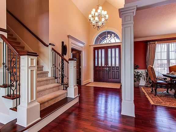 Stunning 5-6 BR, 6 bath, Custom home in Scenic Stoney Creek North II. Enter into the Amazing Cathedral Foyer w/Rich Asian Walnut Floors. Soaring 18' Clg in the Open Great Room featuring Custom Built-ins, & an inviting Fireplace. Custom Study w/built-ins. Massive Chef's kitchen w/Glazed Dark Cherry Cabinetry, Granite, Wolf 6 Burner Gas Cooktop & Double oven, Sub-Zero Frig., Huge Island & Pantry. Spacious Main Floor Master Suite w/Fireplace, Jetted Tub, dual shower & walk-in closet. ALL Baths have Granite & Cherry Cabs. Amazing LL Theater, Kitchenette/bar, Family, Billiard & Exercise rooms too!