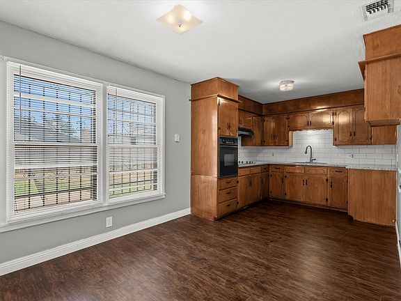 This recently updated 3-bedroom, 1-bath home offers a functional layout and several modern touches. The spacious living room features a wood-burning fireplace and flows into a dedicated dining area. The kitchen includes granite countertops, an electric cooktop, and a built-in wall oven.