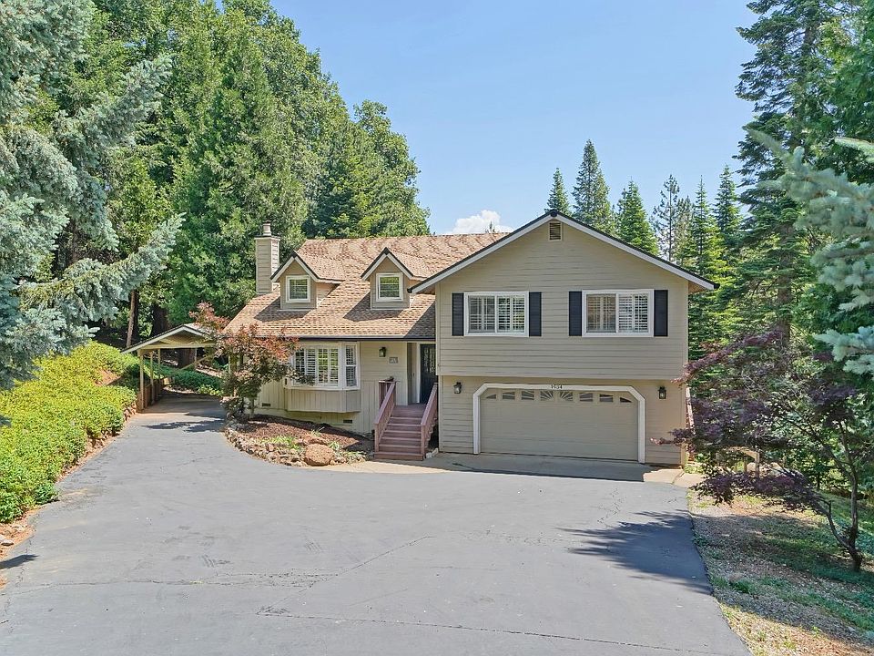 Beautiful 3-4 bedroom home in Pollock Pines! End of cul-de-sac location with a stunning view situated on .83 of an acre. This versatile property offers possibilities for additional living areas such as an office or gym. The kitchen has ample cabinet space, stainless steel appliances, and breathtaking views while you do your dishes. The Spacious living room has a vaulted ceiling, cozy fireplace and plantation shutters. The primary suite features a private balcony, bathroom with shower, and a jetted bathtub. Enjoy entertaining on the expansive Trex deck. Plenty of storage with additional space under the home and a two-car garage plus carport. The house boasts refinished wood floors, newer carpet, and updated window coverings. New HVAC, roof, and high end gutters ensure comfort and durability. Conveniently located near Jenkinson Reservoir, Forebay Lake, and just 1 hour to Lake Tahoe. Close to shopping, freeway access, local wineries, and the charming farms of Apple Hill. . Don't miss this opportunity to call this place home!