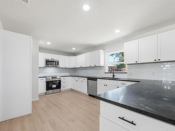 Welcome home to this beautifully renovated gem in a mature Garland neighborhood! Every detail has been thoughtfully updated, offering the look and feel of a brand-new home with the charm of established surroundings. Enjoy a bright, open-concept living area that flows seamlessly into the stunning kitchen, featuring granite countertops, new cabinets, stainless steel appliances, and designer lighting. The split primary suite provides added privacy, with an updated bath showcasing modern finishes. Major improvements include new HVAC, plumbing, water heater, foundation work completed, and a full cosmetic renovation throughout. The home features luxury vinyl plank flooring, fresh interior and exterior paint, cedar accents, and stylish new hardware and fixtures. Step outside to a spacious, fenced backyard—perfect for entertaining—with alley access and additional parking.
