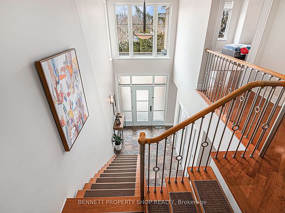 Nestled on an exclusive south-facing 67x153 lot in the prestigious Glabar Park, this architecturally stunning custom-built residence exudes timeless elegance and sophisticated craftsmanship. Step inside to a grand foyer, where soaring cathedral ceilings, a sculptural open-riser maple staircase, and intricately designed coffered ceilings create an atmosphere of refined luxury. The main floor's seamless flow is accentuated by gracefully curved walls and a gourmet kitchen featuring a sleek floating peninsula, perfect for both intimate gatherings and lavish entertaining. The second level, where the expansive primary suite serves as a private sanctuary, boasting a newly renovated 6-piece his-and-hers ensuite with dual private water closets, a spacious walk-in shower, a soaker tub, and two generous walk-in closets. Three additional well-appointed bedrooms and a large full bathroom complete this level, offering ample space for family or guests. The recently fully finished lower level has been meticulously transformed into a versatile retreat with plush flooring and large egress window. This sophisticated space includes a new office or potential fifth bedroom, a full bathroom, and abundant room for recreation or relaxation, all finished to the highest standards of elegance and comfort. Outside, the spacious fenced backyard offers unparalleled privacy and an expansive canvas, ideal for a future pool or bespoke outdoor oasis. Relax under the stylish pergola on the meticulously designed deck, savouring serene views of this rare and generous lot - a true gem in Glabar Park. This distinguished residence, featuring 5 bedrooms, 4 bathrooms, and a dedicated main-floor office, represents a rare opportunity to own a home of unmatched grandeur and versatility in one of the city's most coveted enclaves.